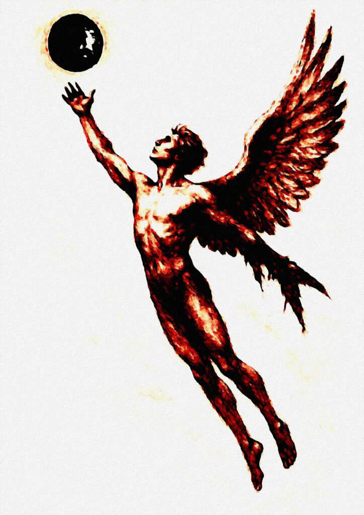 In questa tensione, l’artista evoca il mito di Icaro, ma lo reinterpreta in chiave contemporanea. L’attenzione non è rivolta alla caduta, bensì all’istante dell’ascesa, quando l’impulso di superare i limiti diventa atto di coraggio e di libertà.