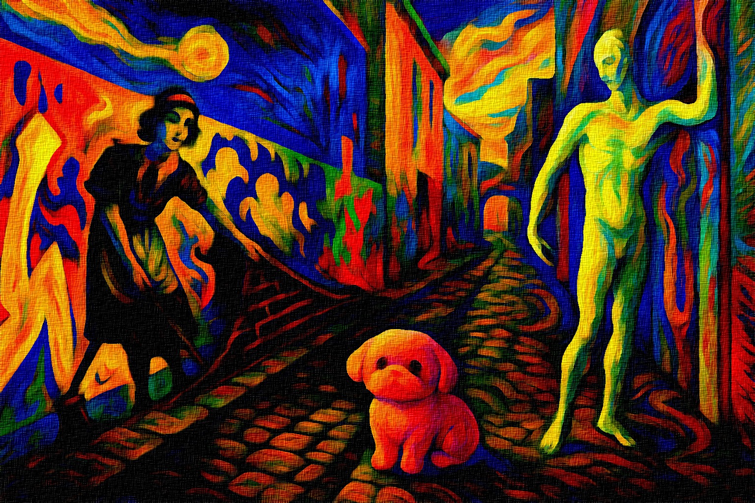 In diesen Werken wird Farbe zu psychischer Materie. Ich verwende starke Kontraste, glühende Sättigungen und fließende Schatten, um die Spannung zwischen Realität und Irrealität zu evozieren.