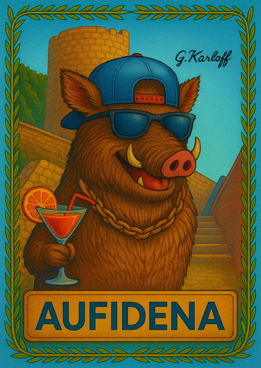 背景にはいつも アルフェデーナ城 が描かれ、アイデンティティと継続性の象徴として、記憶とユーモアの交わる土地 を静かに見守っている。